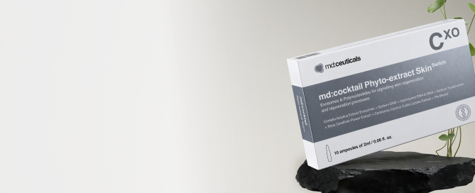 md:cocktail Phyto-extract SkinSwitch is a next-generation regenerative cosmeceutical formulated with plant-derived exosomes, polynucleotides and hyaluronic acid to support continuous skin repair, improve firmness and restore a healthy, radiant glow.